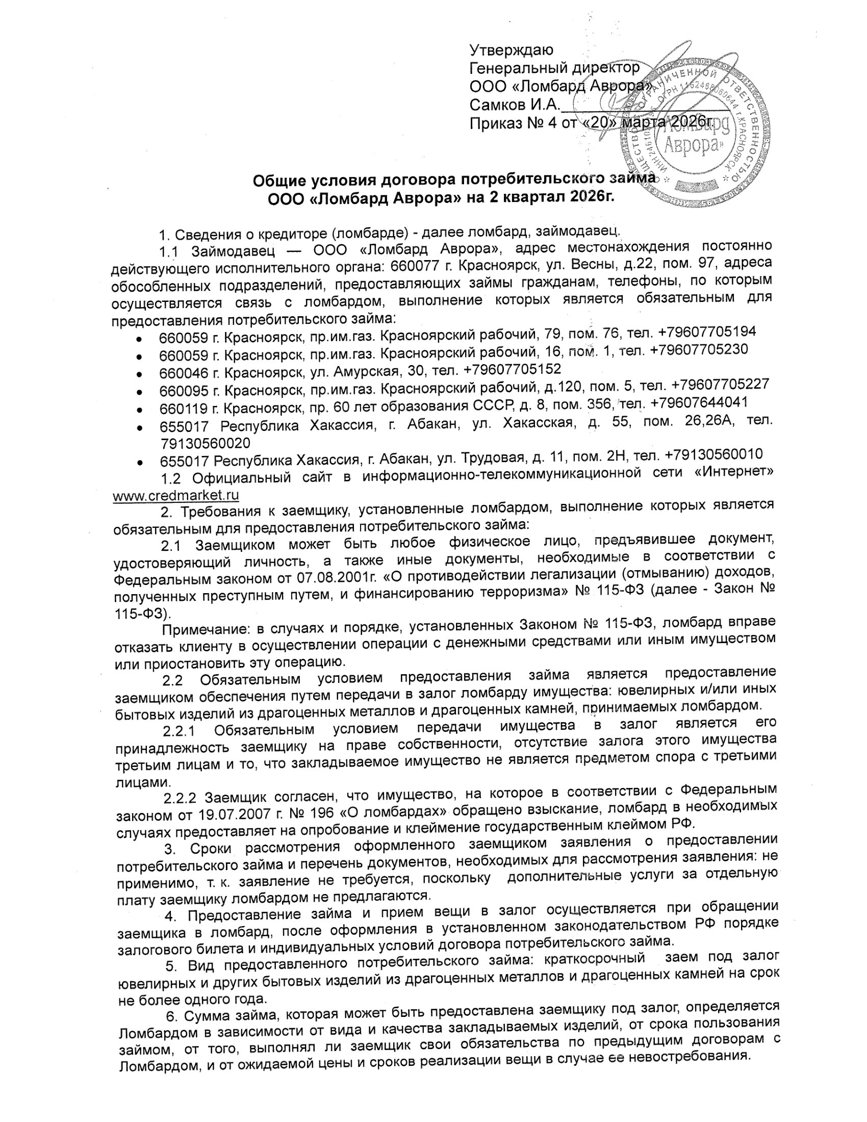 ООО «Ломбард Аврора» работает в соответствии с действующим законодательством РФ, в том числе в соответствии с Федеральным законом "О ломбардах" от 19.07.2007 № 196-ФЗ, исполняет требования Федерального закона "О противодействии легализации (отмыванию) доходов, полученных преступным путем, и финансированию терроризма" от 07.08.2001 № 115-ФЗ.